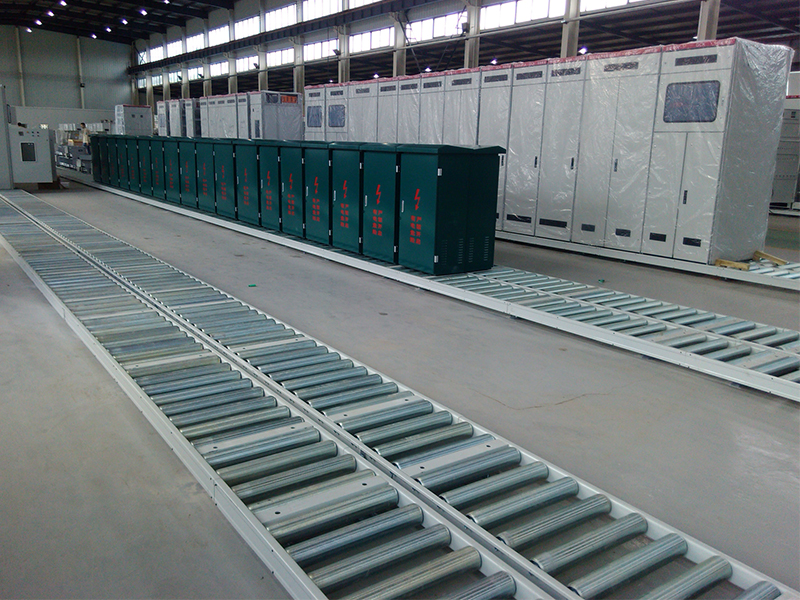 Sähkökaapin kokoonpanokerroksen rullikuljetin linjalla on virtausvapaa rullamäärä, jolle on ominaista matala korkeus, joustava leveys ja korkea kuormituskyky. Se soveltuu korkeiden sähkökaappien kokoonpanoon virtaustuotantolinjassa.