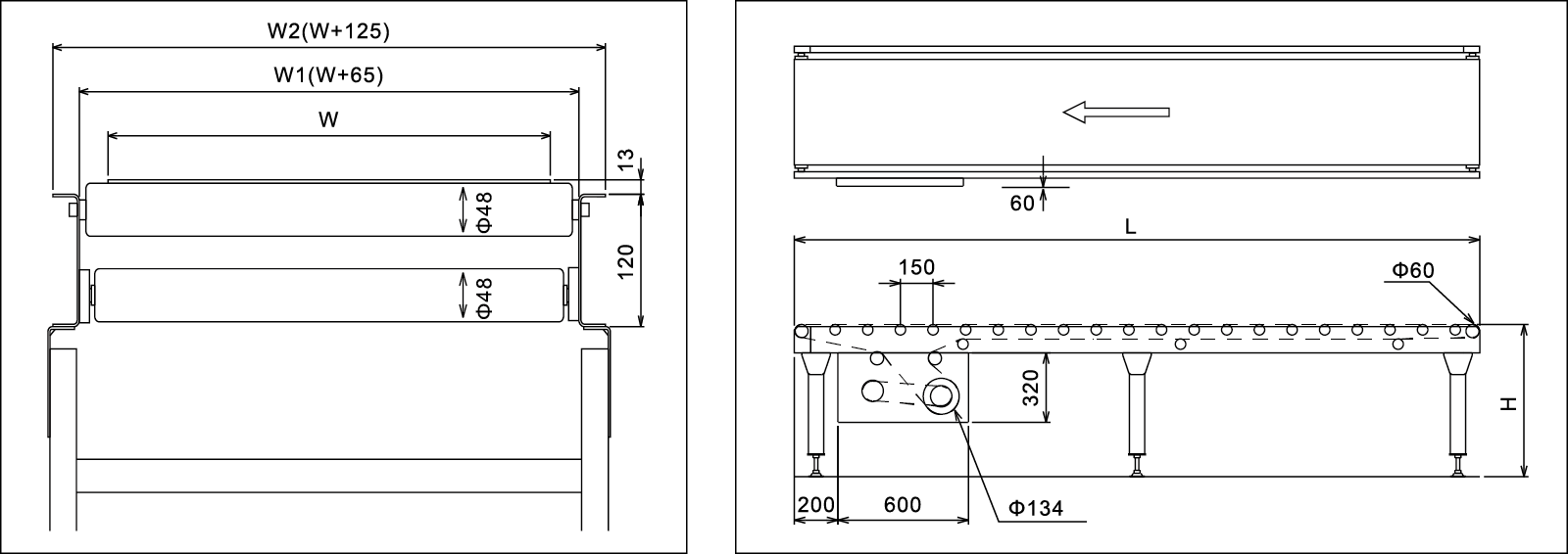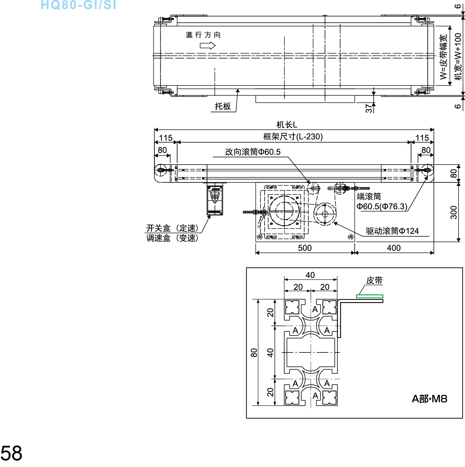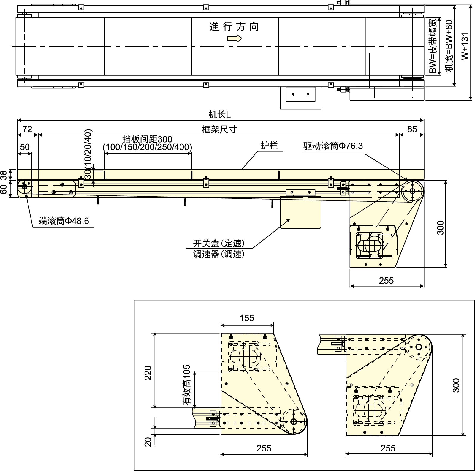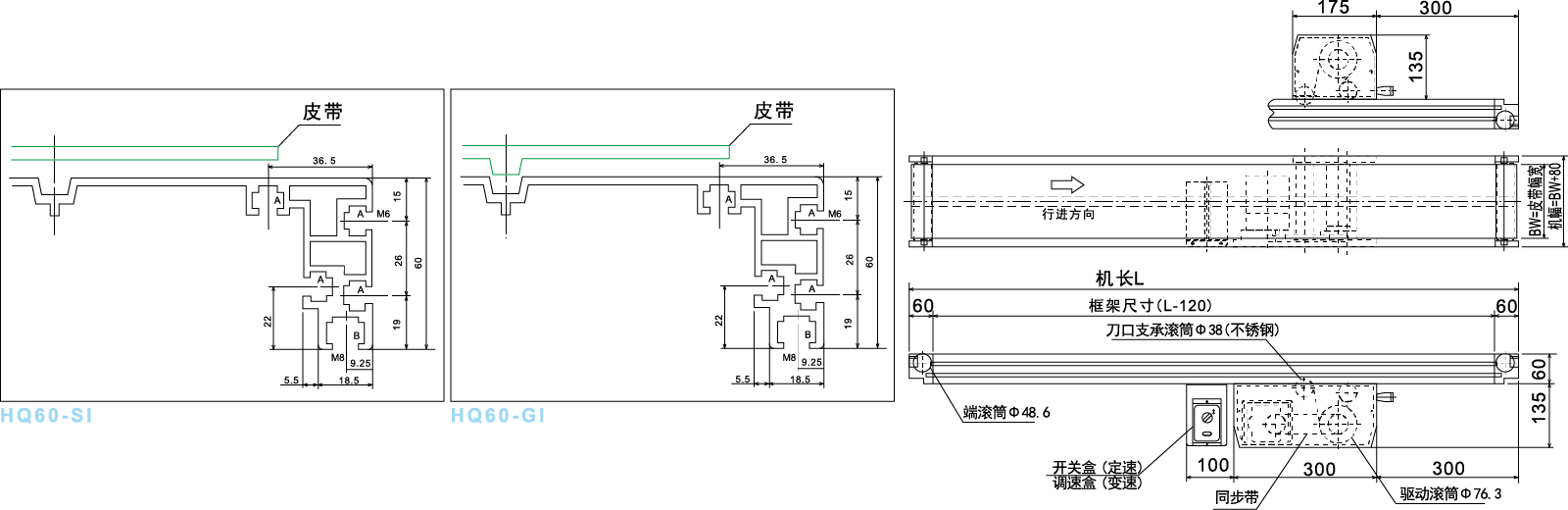 ● Tämä on tavanomainen 34 mm: n hihnikuljetin, ajokeskusta siirretään jakohihnalla.