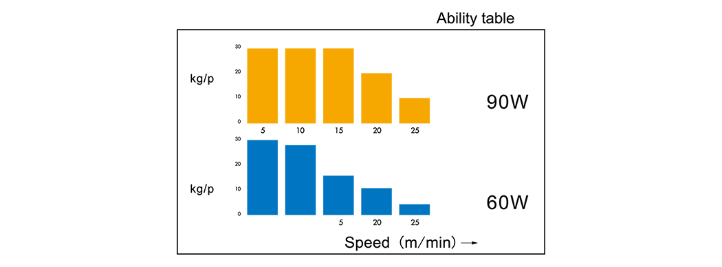 | 1000 ~ 4000 | Kiinteä nopeus 60W, muuttuva nopeus 90w |