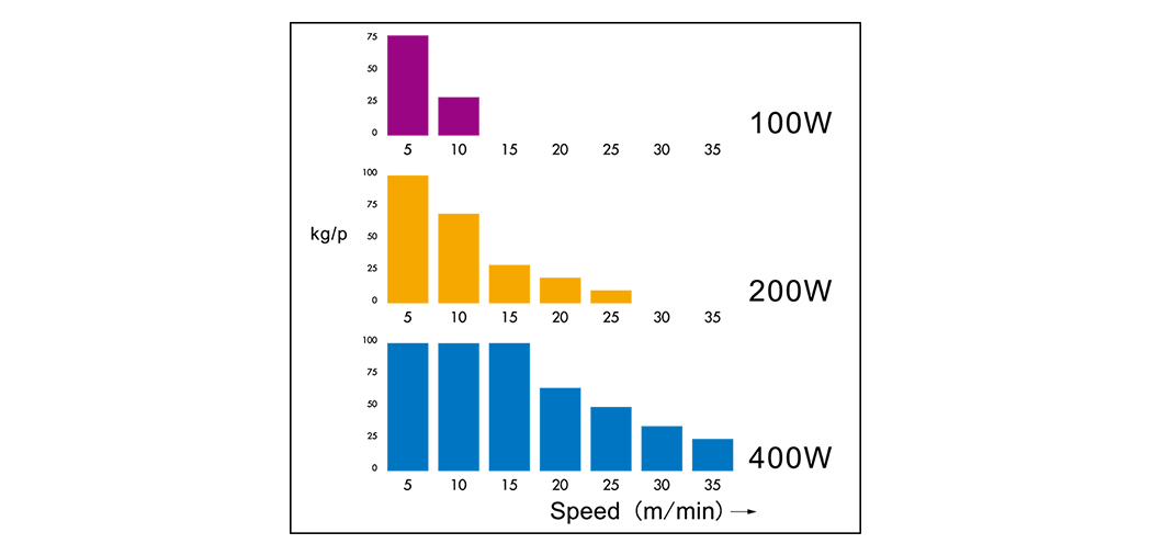 | Power \ hihnan leveys | 100 | 150 |