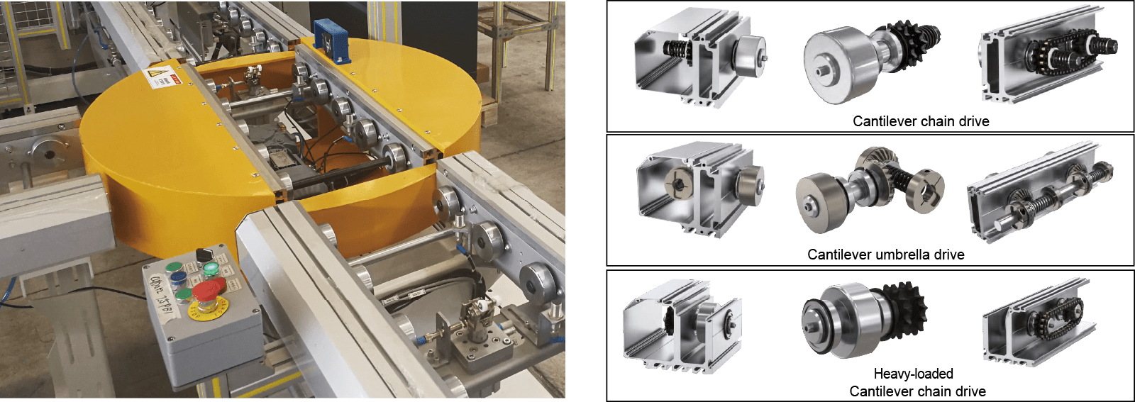 MAC-C-sarjan ketjuvetoiset kuljetintelat kitkakytkimen, rullan ja ketjun avulla voi olla suhteellinen liike, jotta tavaroiden pysähtymisen pitämiseksi tavaroilla ja rullalla ei pitäisi olla kitkaa.