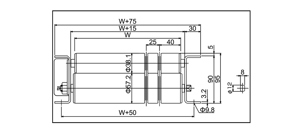 | Ylärullu Halkaisija x paksuus x -akseli | 57,2 × 1,4 × 12 (60,5 × 2,3 × 12) (Galvanointi) | ||