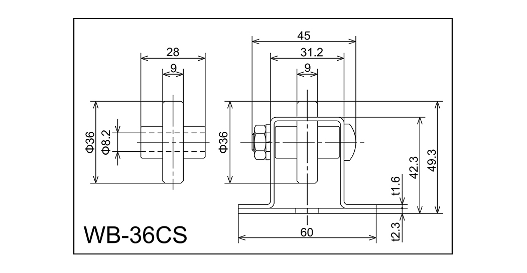 | WB-36CS | 36x9x8.2x28 | M8X40L | 42,3x60x31.2x45x2.3 | 49.3 | 1000 · 2000 · 3000 | 50 · 75 · 100 | 40 | L |