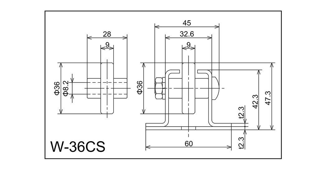 | W-36CS | 36x9x8.2x28 | M8X40L | 42,3x60x32.6x45x2.3 | 47.3 | 1000 · 2000 · 3000 | 50 · 75 · 100 · 150 | 40 | J |