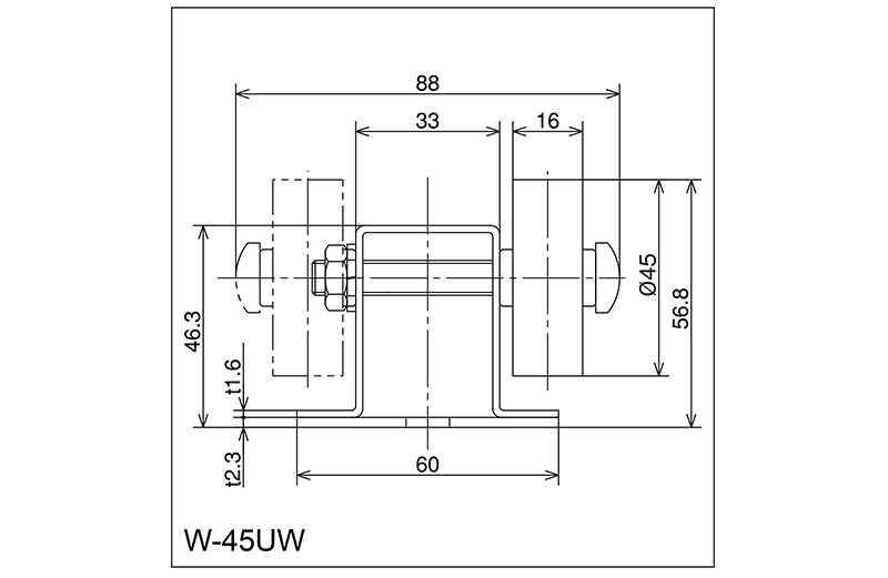| W-45UW | 45 × 16 × 8 × 22 | M8 × 65L | 46,3 × 60 × 33 × 87 × 1.6 2.3 | 56.8 | 1800 · 2400 · 3000 | 50 · 75 · 100 · 150 | 25 | ABS |