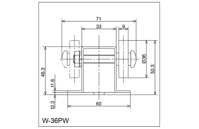 | W-36PS | 36 × 9 × 8 × 28 | M8 × 40L | 42,3 × 60 × 32,6 × 45 × 2,3 | 47.3 | 1800 · 2400 · 3000 | 50 · 75 · 100 · 150 | 10 | POM |