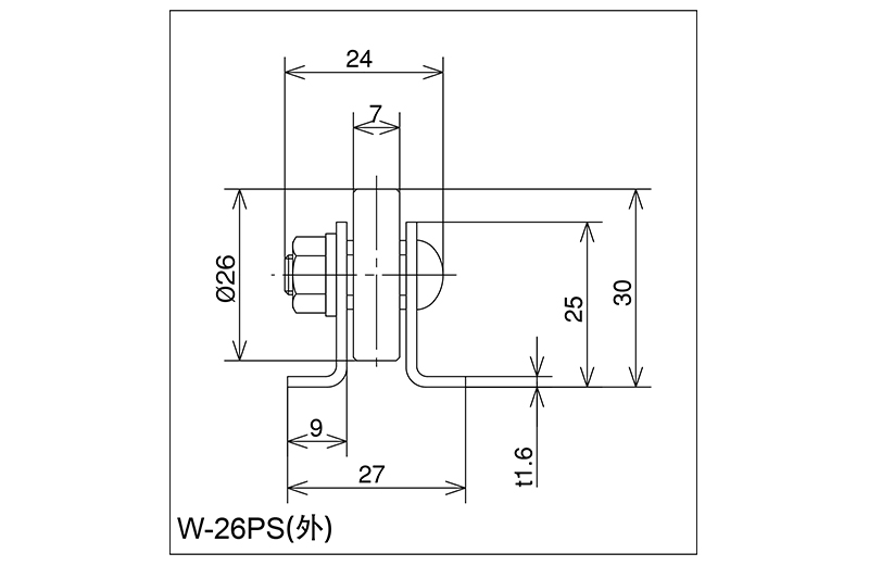 | W-26PS (ulkopuolella) | 26 × 8 × 6 × 10 | M6 × 20L | 25 × 28 × 9 × 24 × 1,6 | 30 | 1000 · 1500 · 2000 | 30 · 35 | 30 | POM |